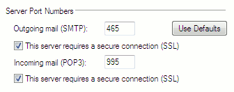 - Change the "Outgoing mail (SMTP)" port number to 465, and the "Incoming mail (POP3)" port number to 995 (or port 993 for an IMAP server).